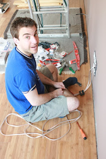 le parquet est completement terminé, l'electricité aussi ( a part les appliques coté salle a manger que l'on a toujours pas trouvé. tout est fonctionnel, meme le variateur de lumiere dans le salon.